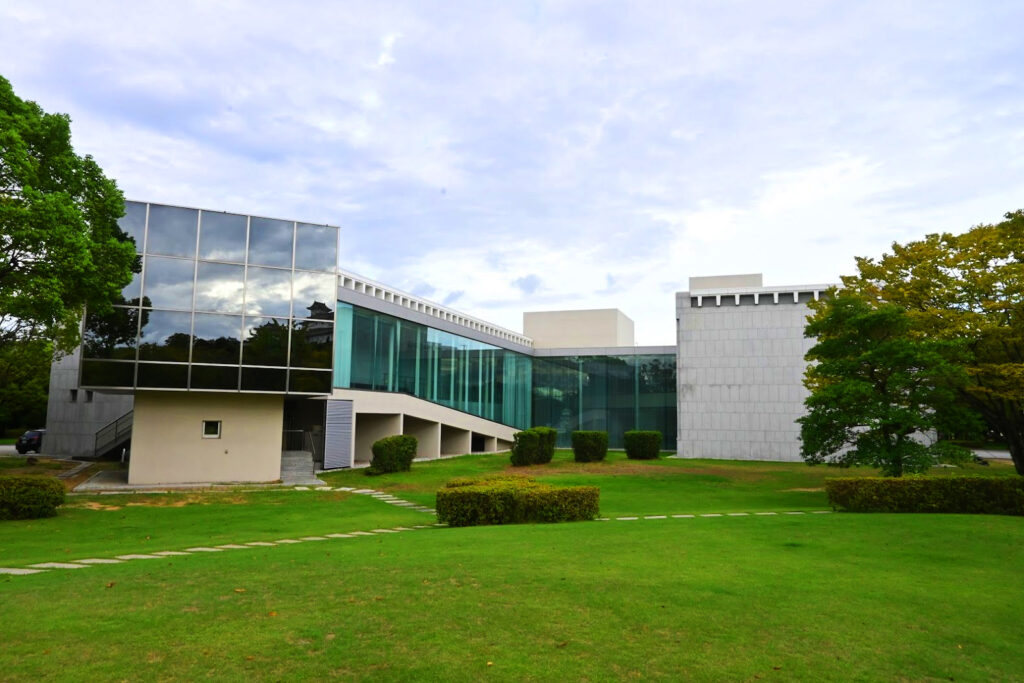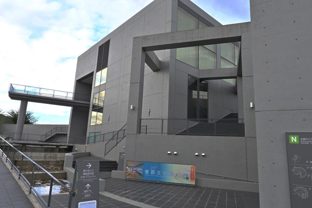 丹下健三設計の建物である。屋根の部分のファサードなんとも丹下さんらしいつくりである。外壁は姫路城の石垣を模しているのだとか。