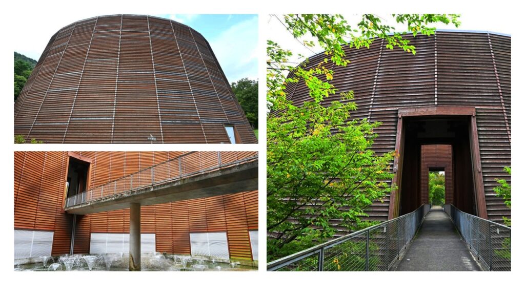 安藤忠雄設計の森や木のすばらしさを紹介する自然学習施設。生野駅から八鹿駅へ移動し、全但バスでハチ北口まで行き、一時間歩くと到着する。しかも山の中にあるため歩く道はすべて坂道である。アクセスは最悪である。車で行くことをおすすめする。日ごろの運動不足もあり歩くだけで息切れ。何度も座り込み、やっとの思いで到着した。